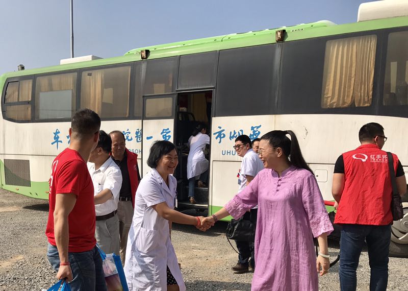 2018年6月7日上午,在公司董事长、芜湖安庆商会会长程华的积极倡导、组织和带领下,由芜湖安庆商会与芜湖市第一人民医院携手组织的“精准扶贫公益行”走进无为县明堂村、走马村,开展了给孤寡老人和困难户“送医送药送健康体检”活动。
